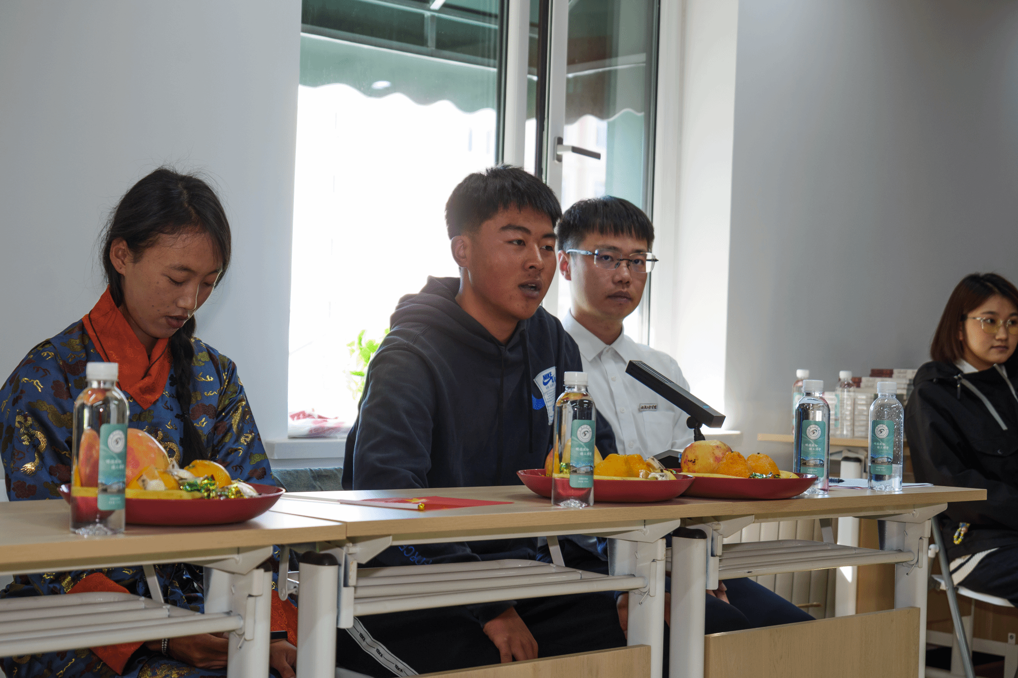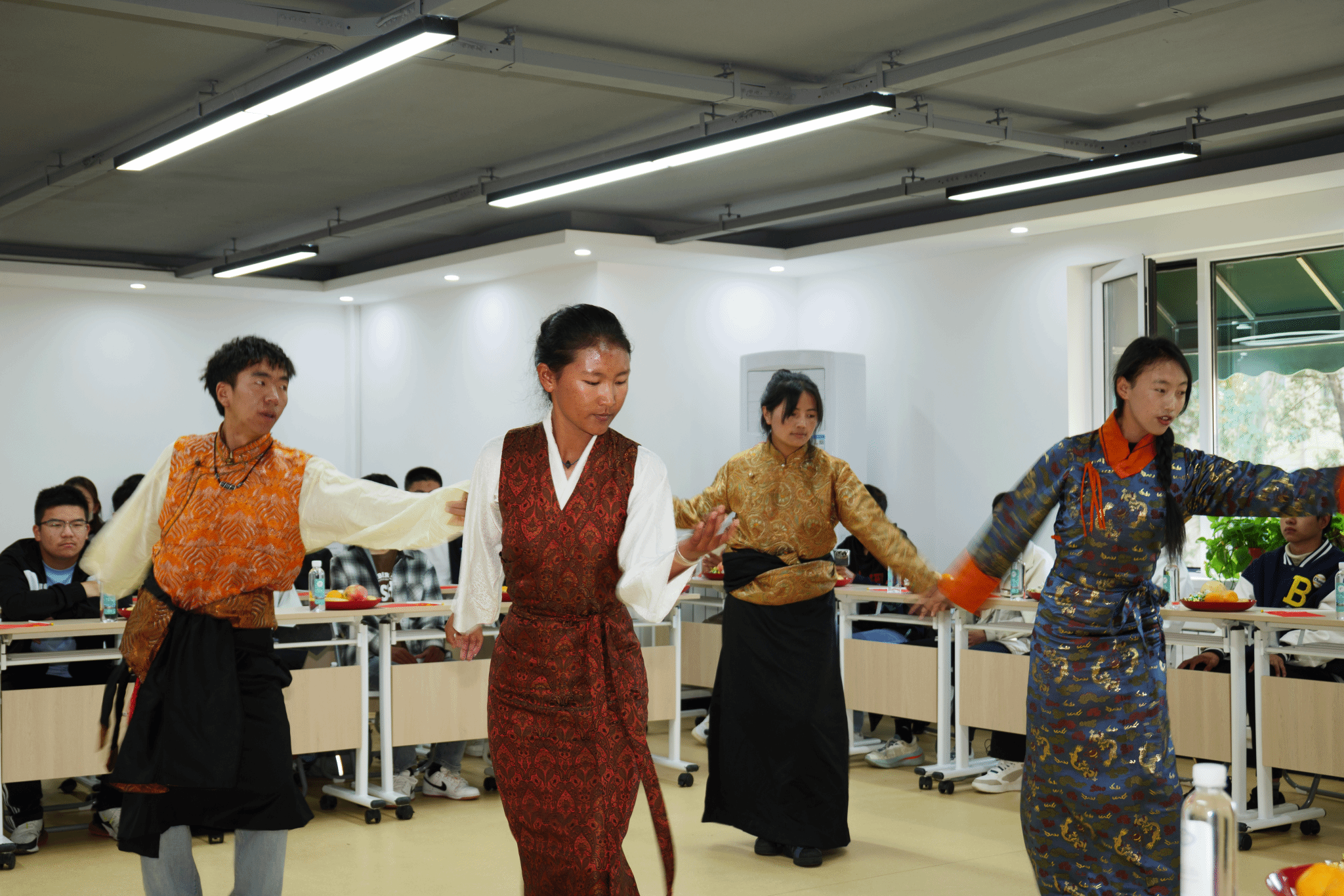活动现场特别为少数民族员工准备了石榴、奶制品、牛肉干等食物。大家在享受美食的同时,也就民族特色、风俗习惯和传统文化进行了畅谈与分享,这不仅为少数民族员工沟通交流提供了平台,也让同学们领略了民族文化风采,坚定了文化自信。EMC易倍嘎玛顿珠分享了他践行责任担当的“最美青年”事迹。洛桑等藏族同学带来了民族舞蹈表演,充分展现出了藏族舞蹈的独特韵味与魅力。