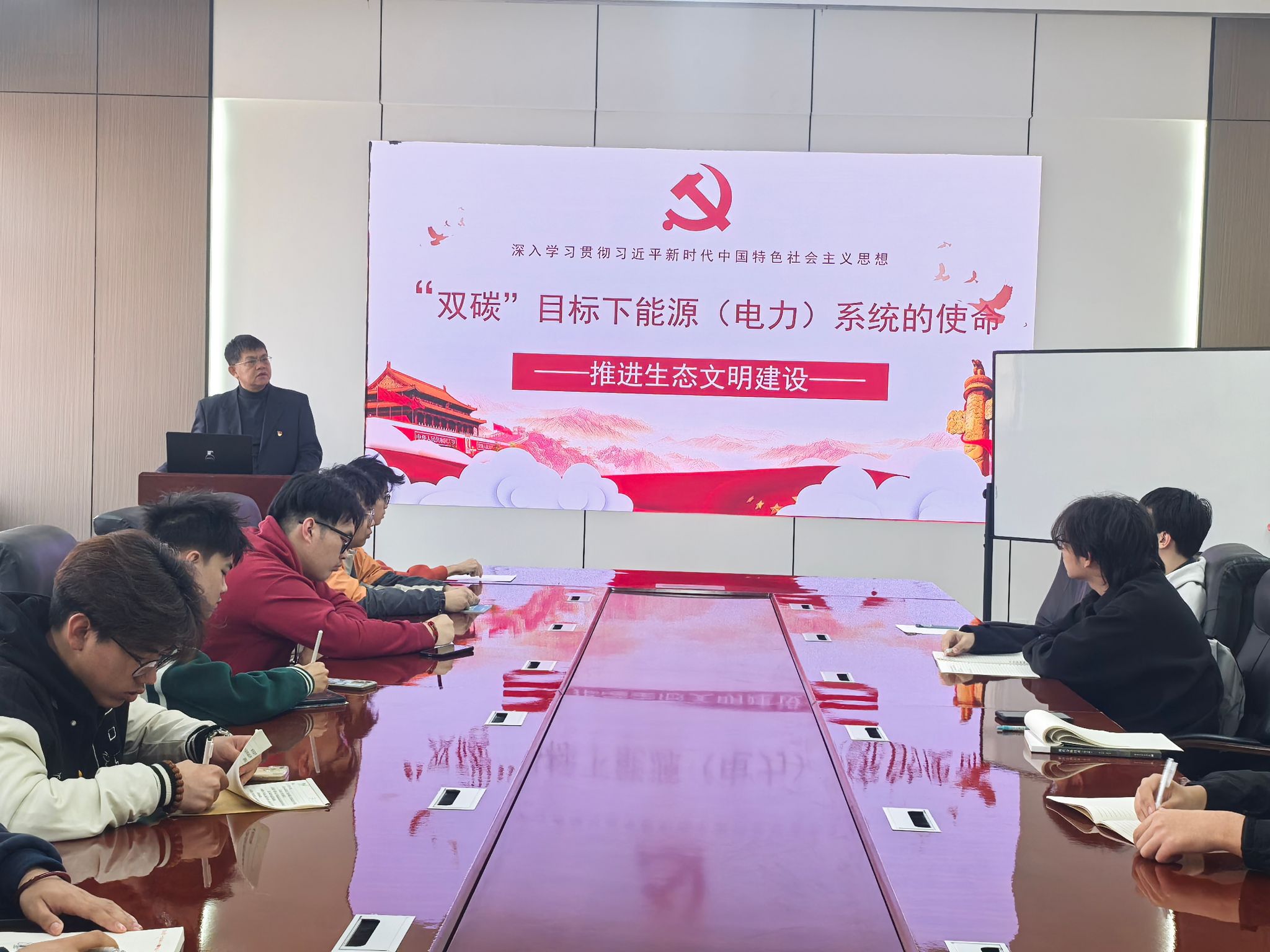 课程中,尹常永经理结合生动的事例以及自身学习、工作经历,勉励新时代老员工肩负“双碳”目标下能源电力的责任与担当,要不断学习与“双碳”有关的知识,正确把握“双碳”目标,提高自身生态责任认知;准确理解“双碳”战略,深化自身生态责任情感;积极践行“双碳”行动,养成良好生态行为习惯;利用所学专业知识,积极参与新能源技术的研发和创新,积极投身“双碳”科技创新,为我国能源转型贡献力量。