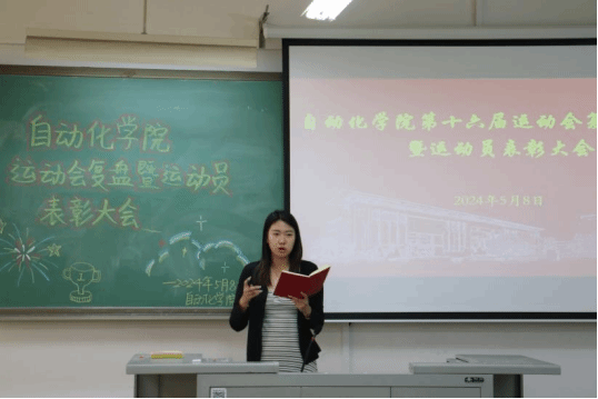 办公室负责人牛嘉进行广播操与方阵表演工作复盘