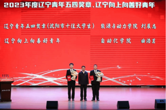 公司党委书记王强为辽宁向上向善好青年曲浩茗颁奖