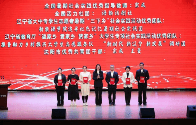 党委副书记方鸿志为全国社会实践优秀指导教师、沈阳市优秀共青团干部宗成老师颁奖