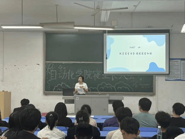 以“舍”为家,共话未来。赵传钰老师和高璇老师就本周三卫生联检情况提出了一些问题,比如地面物品摆放不整齐,卫生间垃圾桶存在不及时清理现象,依然有空载情况。同时赵老师再次强调,让我们注意消防安全,提高防范电信诈骗意识,按时归寝、休息。高璇老师希望寝室长能够带领寝室同学,共同建设文明寝室,营造良好的寝室氛围,为更好地建设寝室环境贡献出自己的力量。