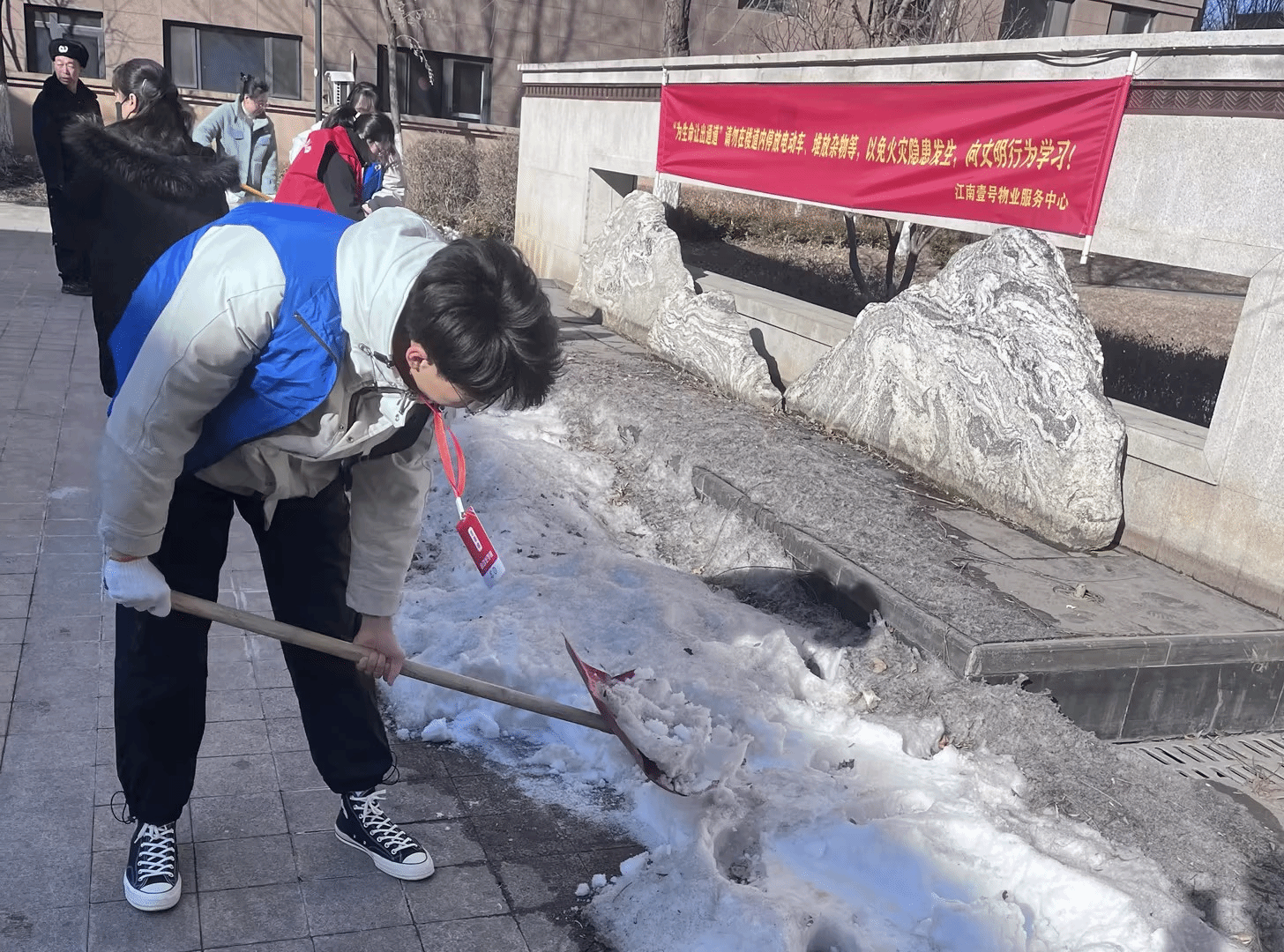 活动中,青年志愿者们深入小区内部公共区开展清扫、除冰活动,他们手拿垃圾钳等卫生工具,分工明确、互相配合,捡拾道路上及绿化带中的纸屑、烟头、塑料瓶、塑料袋等各类垃圾并铲除绿化带内积雪。青年志愿者们努力实现对环境的净化、绿化、美化,为社区营造“人人有责、人人尽力、人人作为”的爱护环境氛围,并为当地居民营造更加清洁、美丽的居住环境。