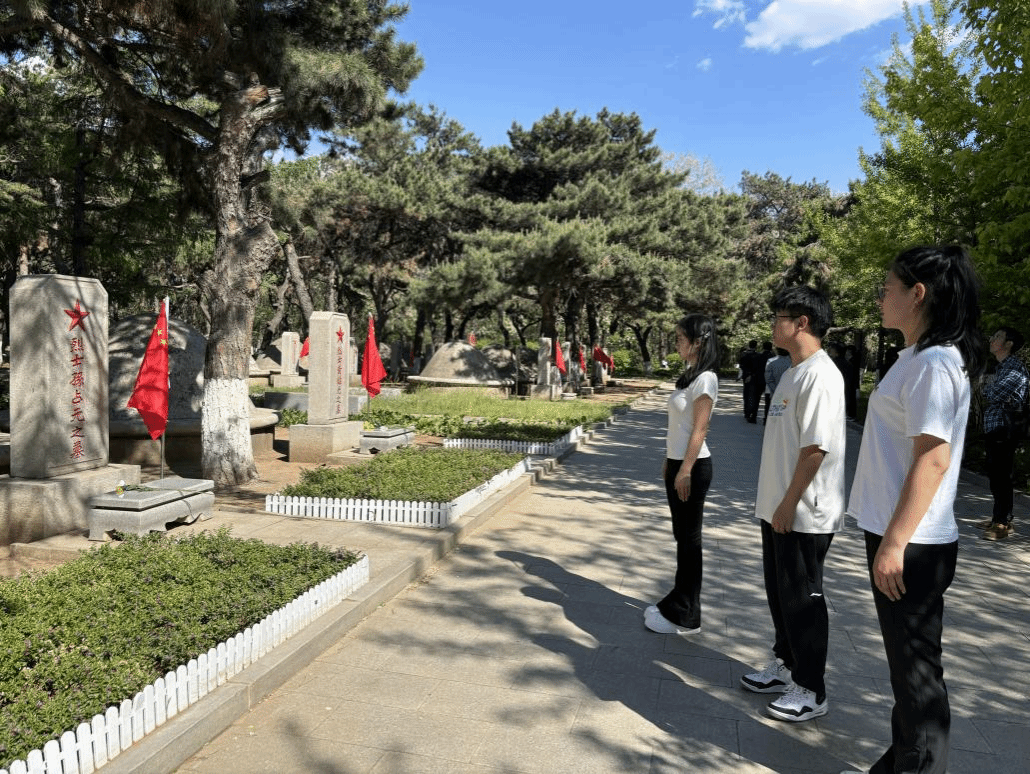 下午,全体师生抵达沈阳抗美援朝烈士陵园,共同瞻仰革命烈士纪念碑,在烈士纪念广场举行悼念仪式,缅怀革命先,致敬时代英雄。