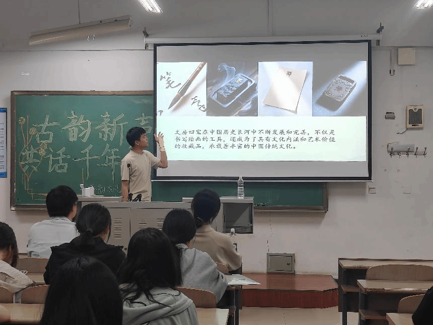5月24日,F103教室内,30余名员工侧耳倾听台上演讲人分享传统文化知识。这是华韵古风社团在举行文化科普讲堂活动,旨在弘扬中华优秀传统文化,增强员工文化自信,同时为热爱传统文化的同学提供一个舞台,通过演讲、互动、展示等形式,让参与者感受传统文化的深厚底蕴与现代活力。